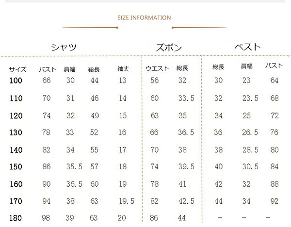 商品内容:半ズボン、半袖シャツ、ベスト、蝶ネクタイ カラー:写真とおり ※平置き採寸になります。